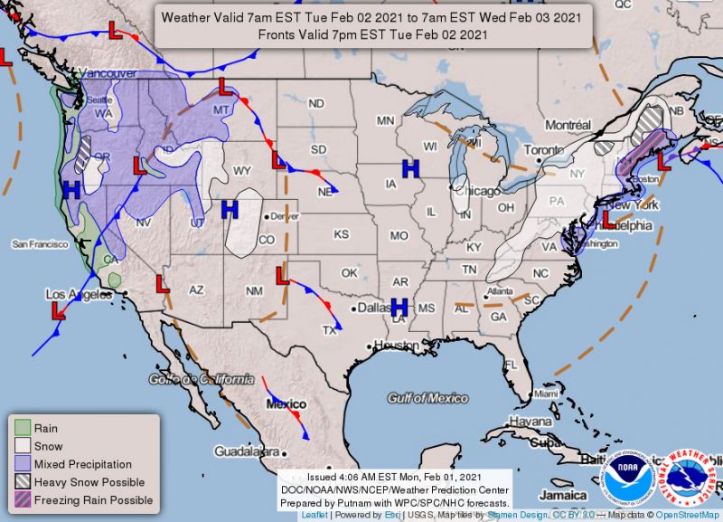 It has been two long years since we’ve had a snow day… and because of online classes, we’re still not having one. But at the very least, you can look outside and enjoy the snow when your eyes get tired of staring at Zoom for hours on end! Snow showers are likely to continue through the day into the evening, with little accumulation expected. The high temperature will be 34 degrees F, with wind from the northwest gusting as high as 32 mph.