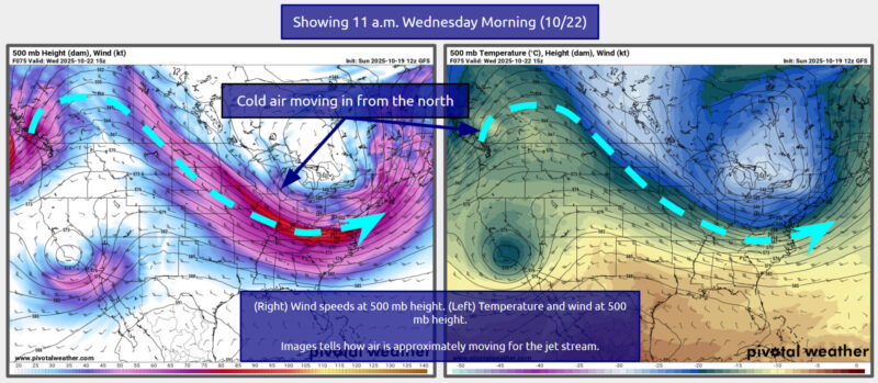 Coupled with the passage of this front, we remain nestled within colder air up until early Saturday morning. The jet stream’s setup from Wednesday into the end of the week should help bring some colder, northern air into the Mid-Atlantic.