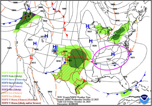 In the above surface fronts map, you can see the high pressure system and cold front setup that is in place for Friday. Enjoy this pleasant fall weather!