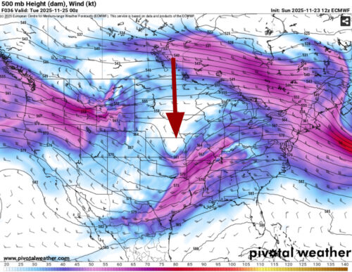 This trough and its associated low-pressure system, though weak, will bring with it a large area of light to moderate rain showers that will quickly move eastward and impact much of the Northeast. An example of what the radar could look like during the early afternoon hours on Tuesday is pictured below, with most models calling for around a quarter of an inch of rainfall.