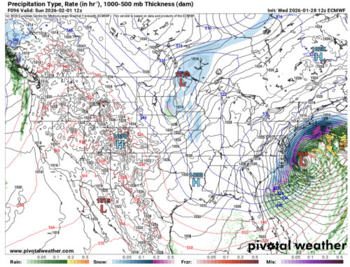 The European model shows similar areas being impacted by snow from the coastal low (namely the Carolinas and Virginia), while also being more generous with lighter snow impacting the Eastern Shore, Delaware, New Jersey, and New York. Similar to the GFS model, Rhode Island and Massachusetts receive some snow as well. As of right now, both models show a low chance for weekend snow in College Park.